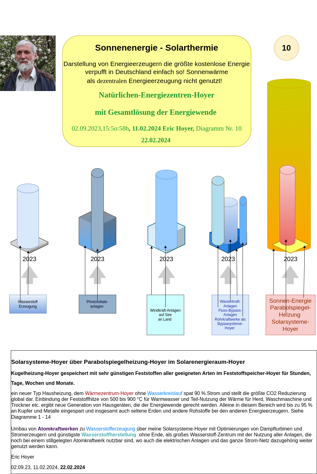 - Sonnenenergie bis Wasserstoff Darstellung Stand der zurzeit genutzten Energie oder der möglichen Erzeugung einer dezentralen Solarnutzung in Natürlichen- Energiezentren-Hoyer Diagramme 1-10